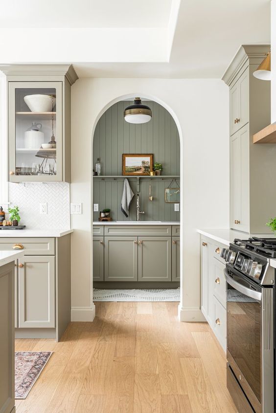 - در سبک نئوکلاسیک، چند ردیف کابینت درب شیشهای در آشپزخانه وجود دارد.